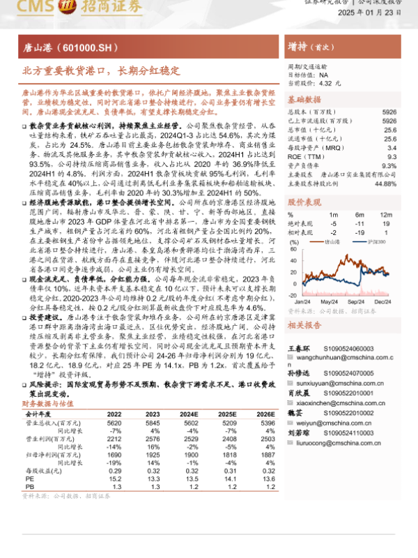 【海通证券】【20250123】20250123-招商证券-唐山港-601000.SH-北方重要散货港口,长期分红稳定-20页 行业研究