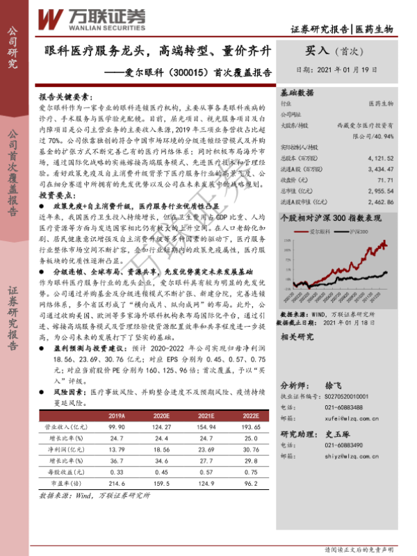 【万联证券】【20210119】20210119-万联证券-爱尔眼科-300015.SZ-首次覆盖报告:眼科医疗服务龙头,高端转型、量价齐升-22页 行业研究