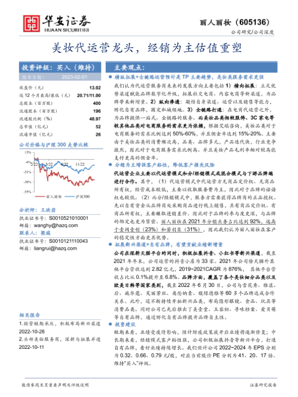 【华安证券】【20230201】美妆代运营龙头,经销为主估值重塑-23页 行业研究
