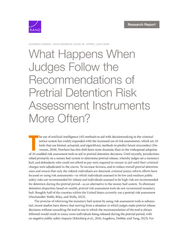 【兰德公司】【20240101】当法官更频繁地遵循审前拘留风险评估工具的建议时会发生什么?-32页 行业研究