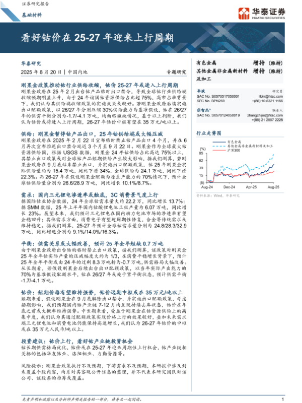 【华泰证券】【202508】基础材料行业专题研究:看好钴价在25-27年迎来上行周期-16页 证券期货研究报告
