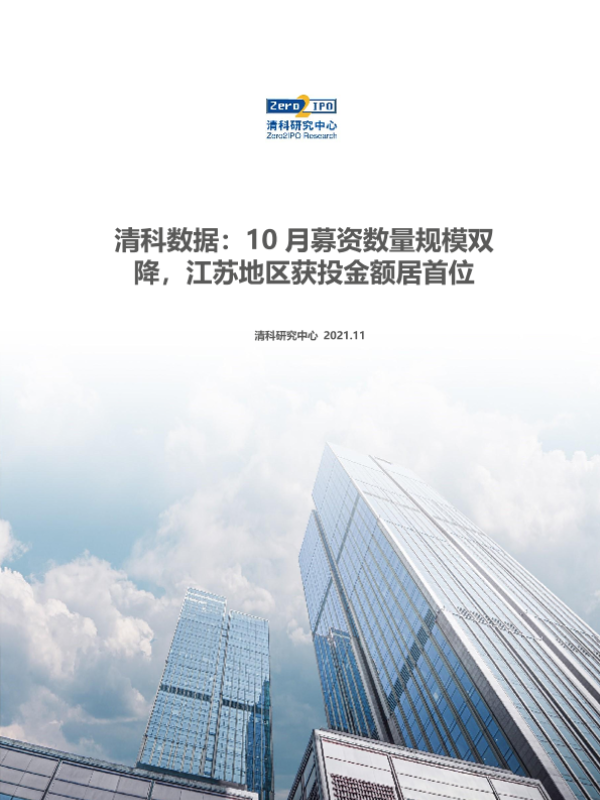 【清科研究中心】【202111】10月募资数量规模双降,江苏地区获投金额居首位-10页 市场调研