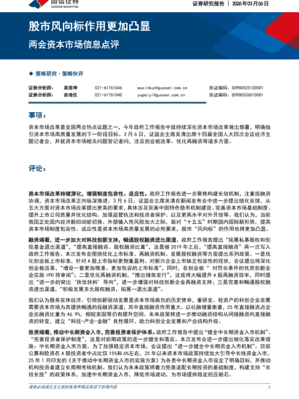 【国信证券】【202603】股市风向标作用更加凸显两会资本市场信息点评-4页 证券期货研究报告