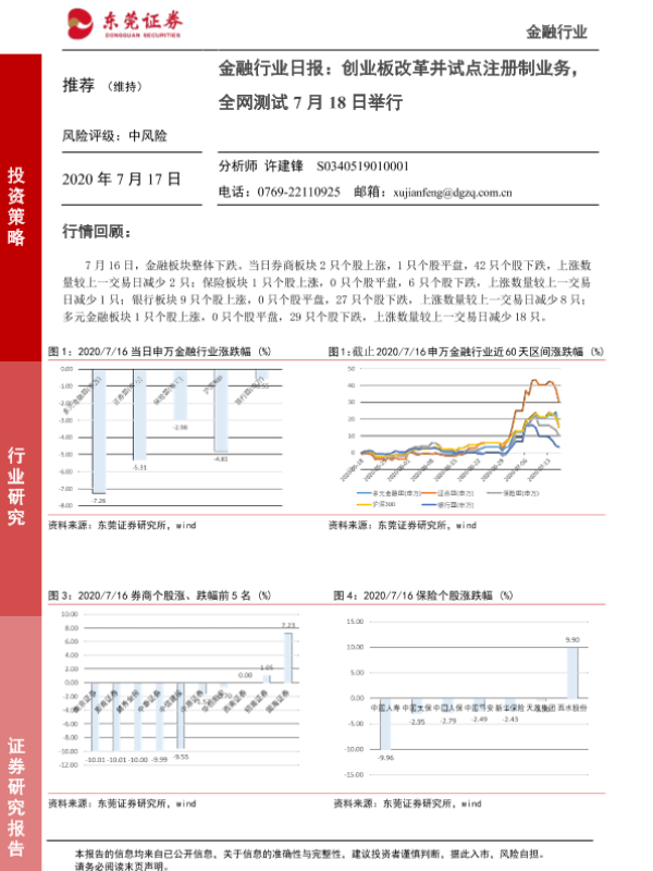【东莞证券】【20200717】金融行业日报:创业板改革并试点注册制业务,全网测试7月18日举行-4页 行业研究