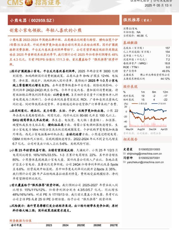 【海通证券】【20250513】创意小家电领航,年轻人喜欢的小熊-18页 证券期货研究报告