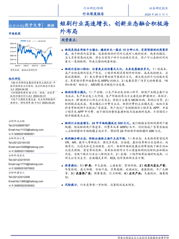 【海通证券】【20240411】传媒行业深度报告:短剧行业高速增长,创新业态融合积极海外布局-14页 行业研究