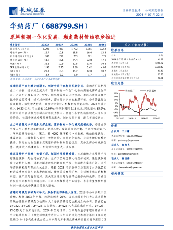 【长城证券】【20240722】华纳药厂-原料制剂一体化发展,濒危药材管线稳步推进-30页 行业研究