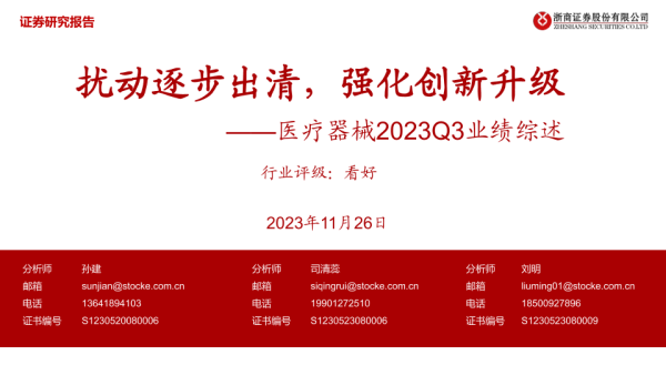 【浙商证券】【20231126】医疗器械2023Q3业绩综述:扰动逐步出清,强化创新升级-28页 行业研究