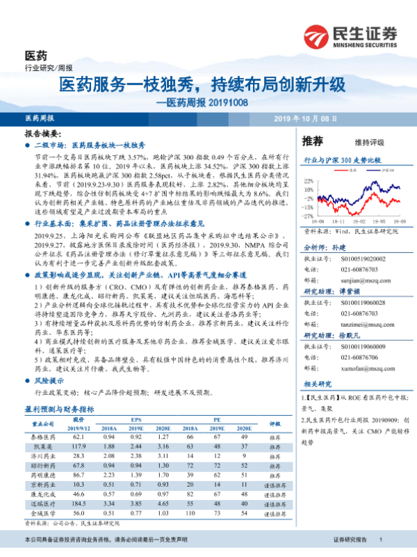 【民生证券】【20191008】医药服务一枝独秀,持续布局创新升级-14页 行业研究