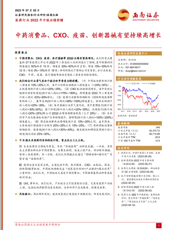 【西南证券】【20220702】医药行业2022年中报业绩前瞻-7页 行业研究