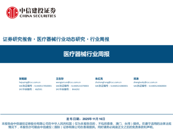 【中信建投证券】【202511】医疗器械行业周报-25页 证券期货研究报告