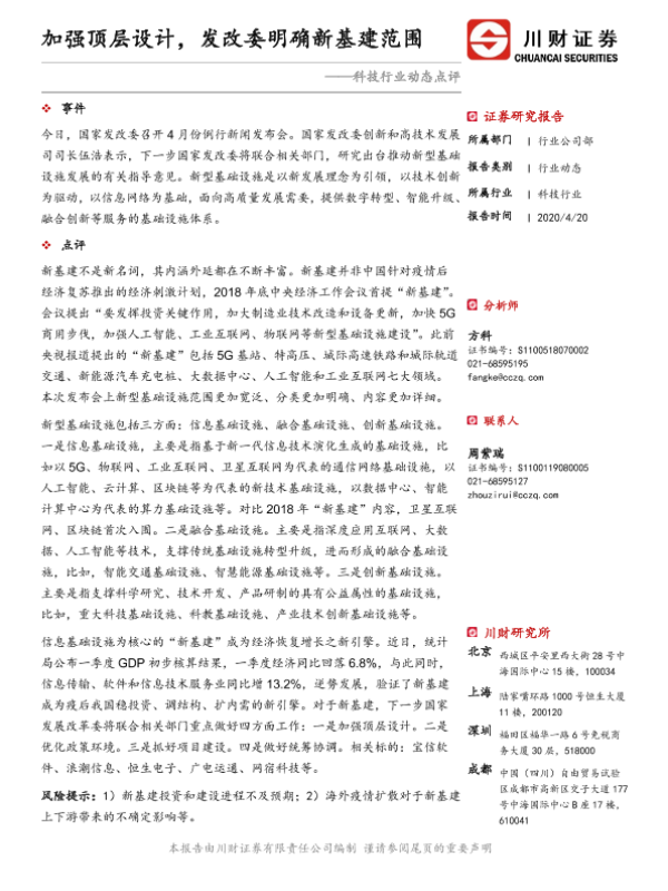 【川财证券】【20200420】加强顶层设计,发改委明确新基建范围-2页 行业研究