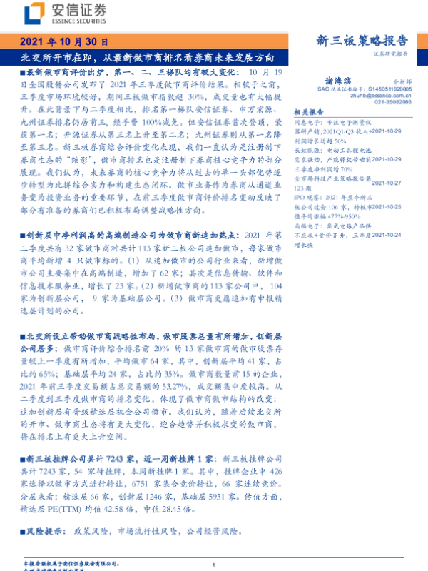 【安信证券】【20211030】新三板策略报告:北交所开市在即,从最新做市商排名看券商未来发展方向-23页 行业研究