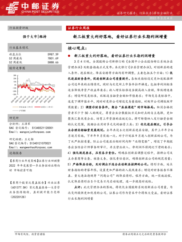 【中邮证券】【20220304】证券行业周报:新三板重大利好落地,看好证券行业长期利润增量-11页 行业研究