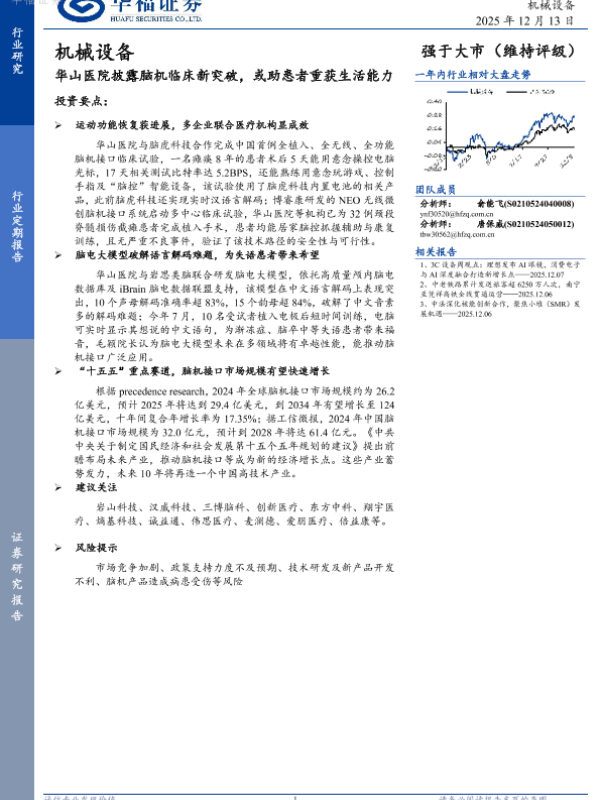 【华福证券】【202412】华山医院披露脑机临床新突破,或助患者重获生活能力-2页 证券期货研究报告