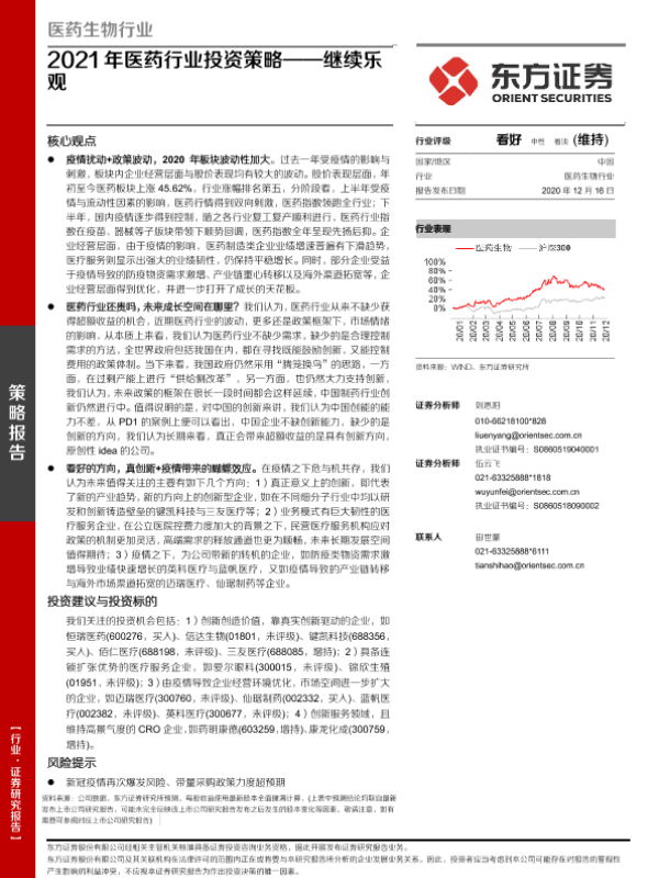 【东方证券】【20201216】2021年医药行业投资策略——继续乐观-40页 行业研究