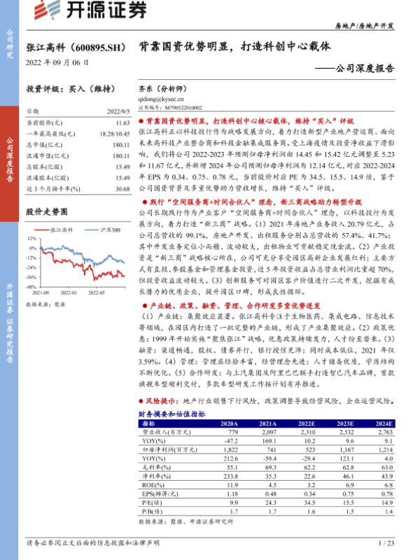 【开源证券】【20220906】20220906-开源证券-张江高科-600895.SH-公司深度报告:背靠国资优势明显,打造科创中心载体-23页 行业研究