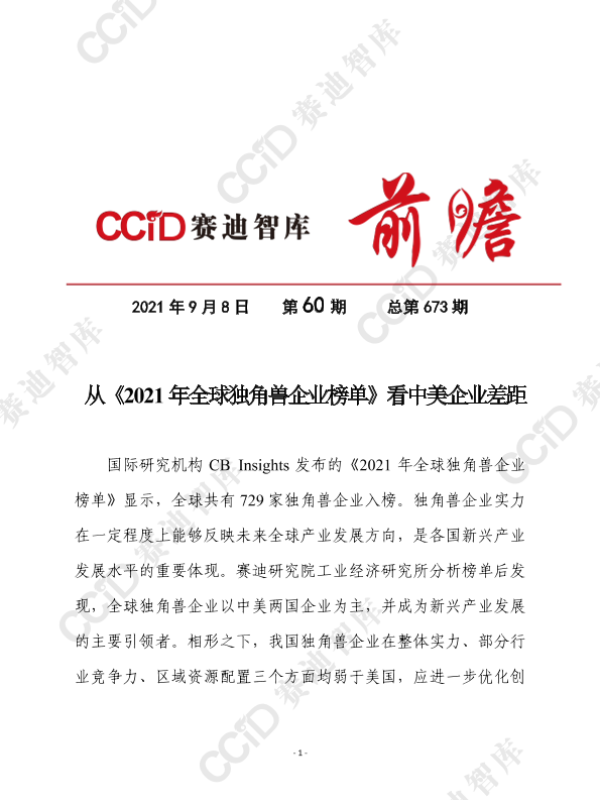 【赛迪研究院工业经济研究所】【20210908】从《2021年全球独角兽企业榜单》看中美企业差距-11页 行业研究