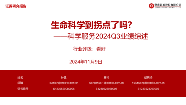 【浙商证券】【20241109】生命科学到拐点了吗?-28页 行业研究