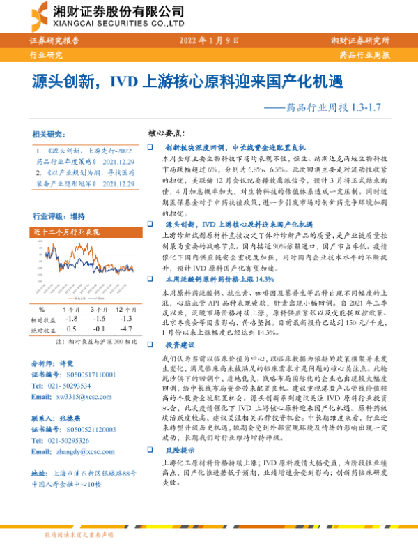 【湘财证券】【20220109】药品行业周报:源头创新,IVD上游核心原料迎来国产化机遇-14页 行业研究