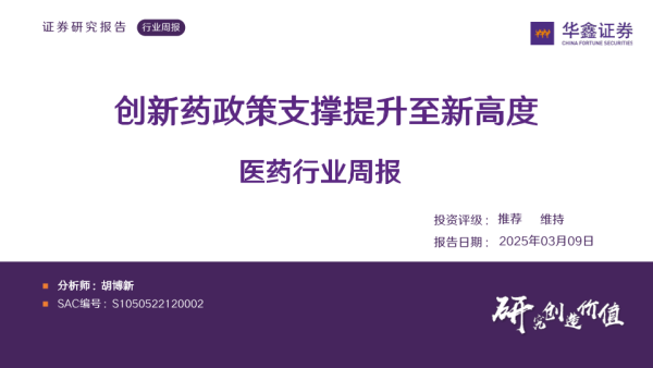 【华鑫证券】【20250309】医药行业周报:创新药政策支撑提升至新高度-32页 行业研究