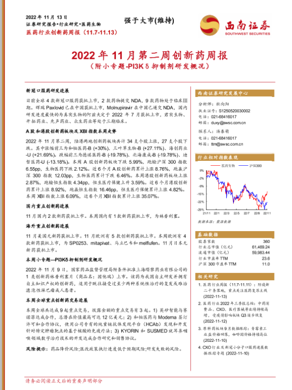 【西南证券】【20221113】2022年11月第二周创新药周报-28页 行业研究