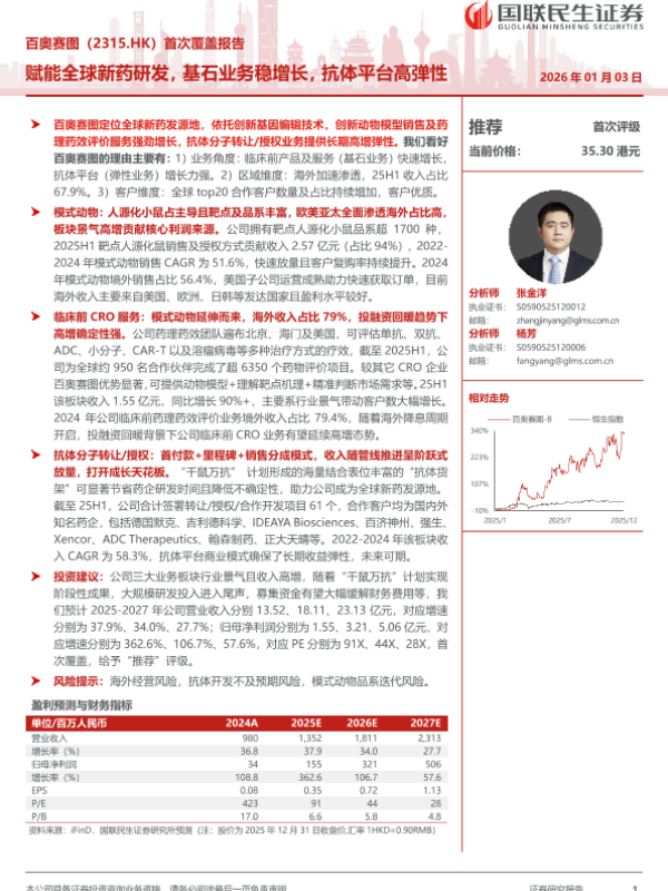 【国联民生证券】【202401】百奥赛图(2315.HK)首次覆盖报告:赋能全球新药研发,基石业务稳增长,抗体平台高弹性-40页 证券期货研究报告