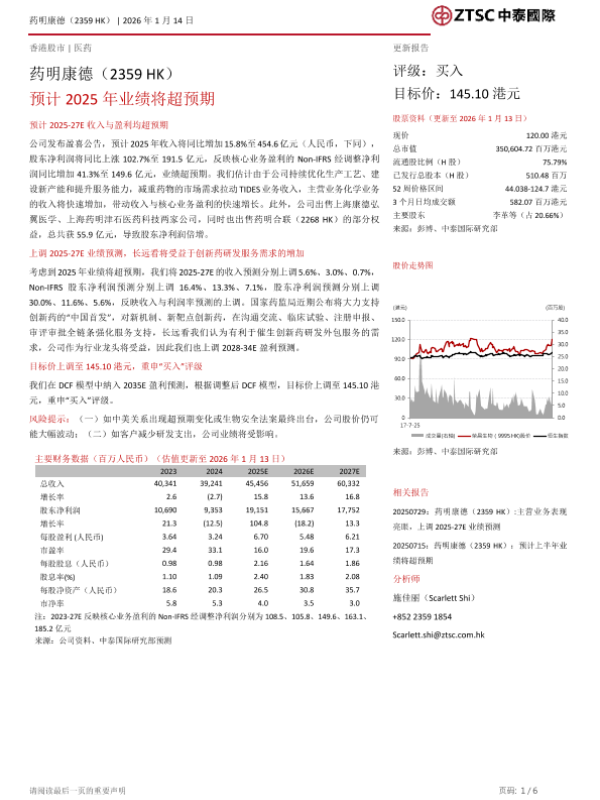【中泰国际】【202601】药明康德(2359 HK)预计2025年业绩将超预期-6页 证券期货研究报告