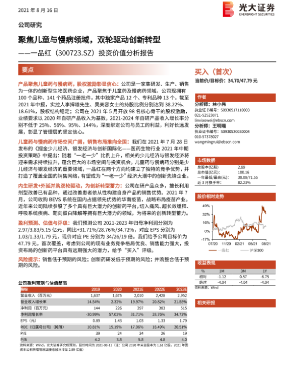 【光大证券】【20210816】聚焦儿童与慢病领域,双轮驱动创新转型——一品红(300723.SZ)投资价值分析报告-26页 行业研究