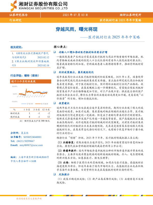 【湘财证券】【20250703】医疗耗材行业2025年年中策略:穿越风雨,曙光将现-25页 行业研究