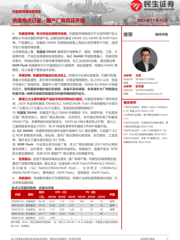 【民生证券】【20250105】2025年01月05日更新-【民生证券】利基型存储深度报告:供需拐点已至,国产厂商百花齐放-43页 行业研究