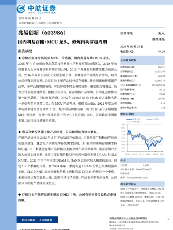 【中航证券】【20240628】国内利基存储+MCU龙头,修炼内功穿越周期-33页 公司研究