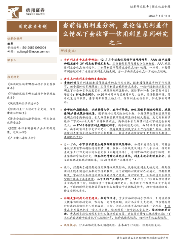【德邦证券】【20230116】当前信用利差分析,兼论信用利差什么情况下会收窄-19页 行业研究