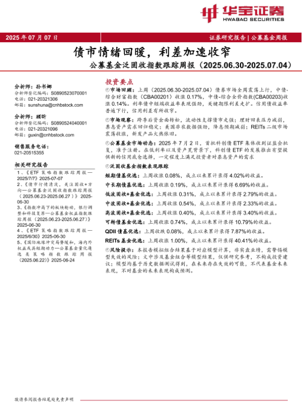 【华宝证券】【20250707】公募基金泛固收指数跟踪周报-10页 证券期货研究报告