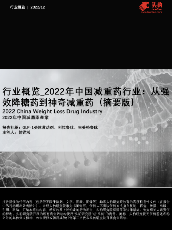 【头豹研究院】【20230405】2022年中国减重药行业:从强效降糖药到神奇减重药(摘要版)-16页 行业研究