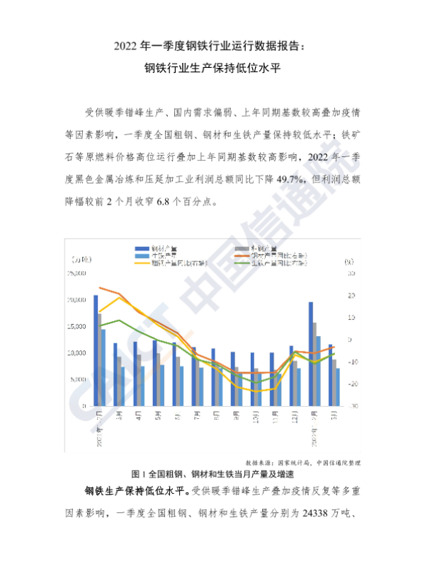 【中国信通院】【20220520】2022年一季度钢铁行业运行数据报告:钢铁行业生产保持低位水平-4页 行业研究