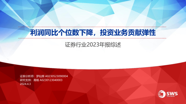 【申万宏源】【20240403】证券行业2023年报综述:利润同比个位数下降,投资业务贡献弹性-19页 行业研究