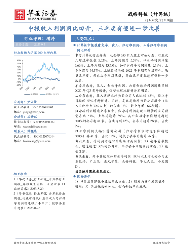 【华安证券】【20230903】20230903-华安证券-战略科技(计算机)行业周报:中报收入利润同比回升,三季度有望进一步改善-20页 行业研究