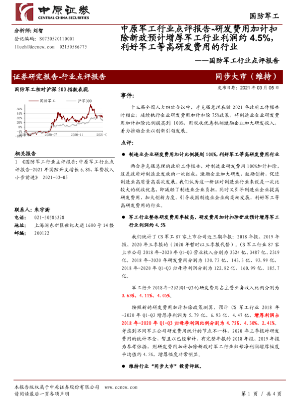 【中原证券】【20210305】国防军工行业点评报告:研发费用加计扣除新政预计增厚军工行业利润约4.5%-4页 行业研究