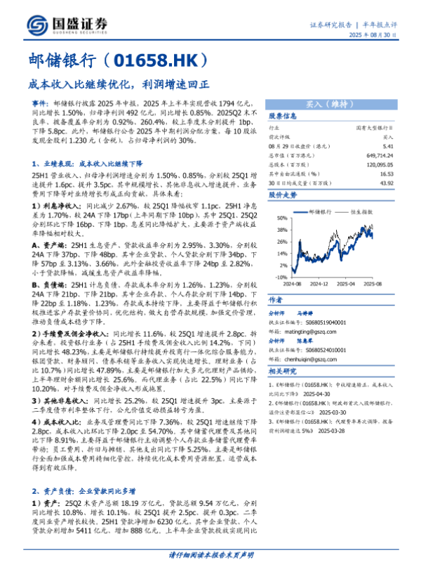 【马诗婷】【20250830】邮储银行-成本收入比继续优化_利润增速回正-5页 证券期货研究报告