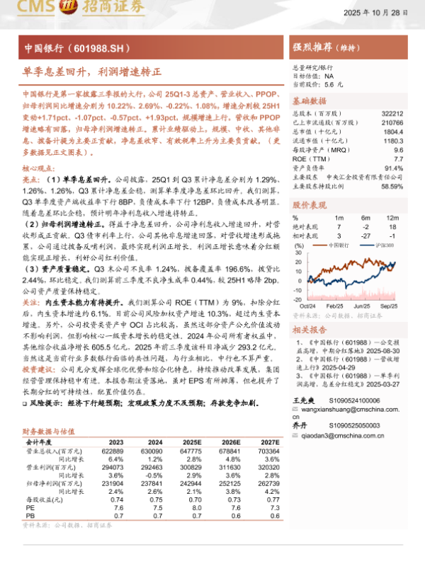 【海通证券】【202510】中国银行单季息差回升,利润增速转正-19页 公司研究
