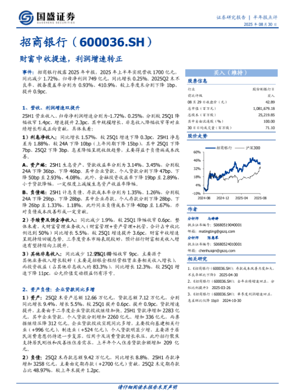 【海通证券】【20250830】招商银行-财富中收提速,利润增速转正-5页 证券期货研究报告