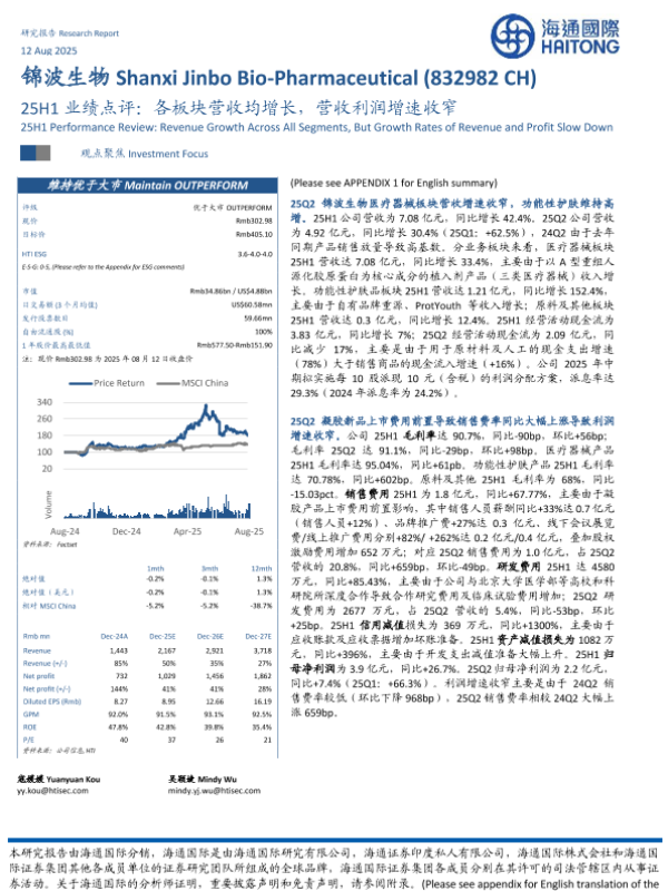 【海通国际】【202508】25H1业绩点评:各板块营收均增长,营收利润增速收窄-13页 证券期货研究报告
