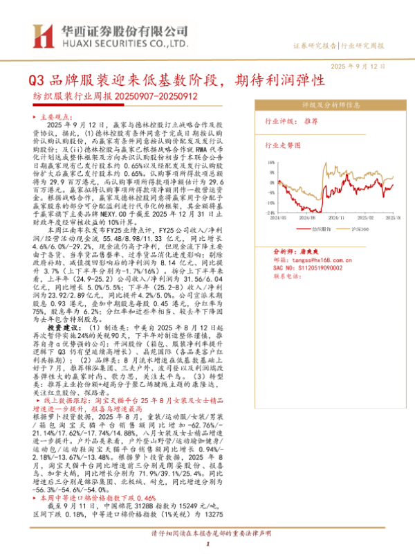 【华西证券】【202509】Q3品牌服装迎来低基数阶段,期待利润弹性-36页 证券期货研究报告