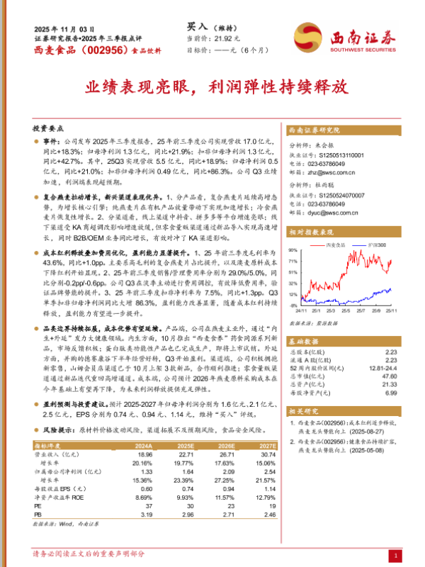 【西南证券】【202511】西麦食品(002956)2025年三季报点评-5页 证券期货研究报告