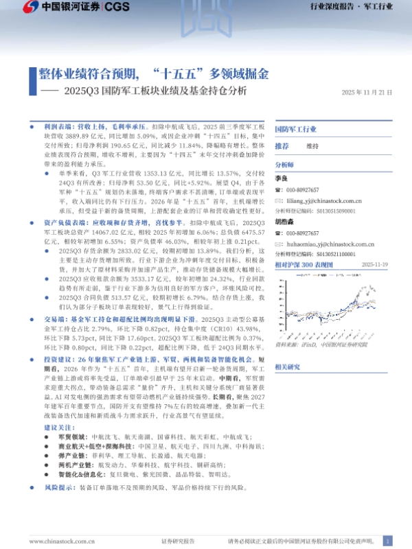【银河证券】【2025】2025Q3国防军工板块业绩及基金持仓分析-23页 证券期货研究报告