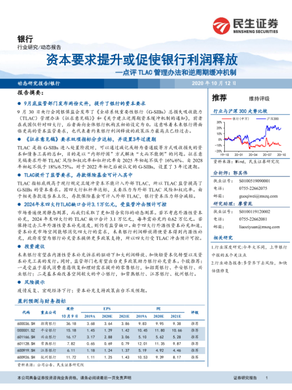 【民生证券】【20201012】银行:点评TLAC管理办法和逆周期缓冲机制:资本要求提升或促使银行利润释放-12页 行业研究