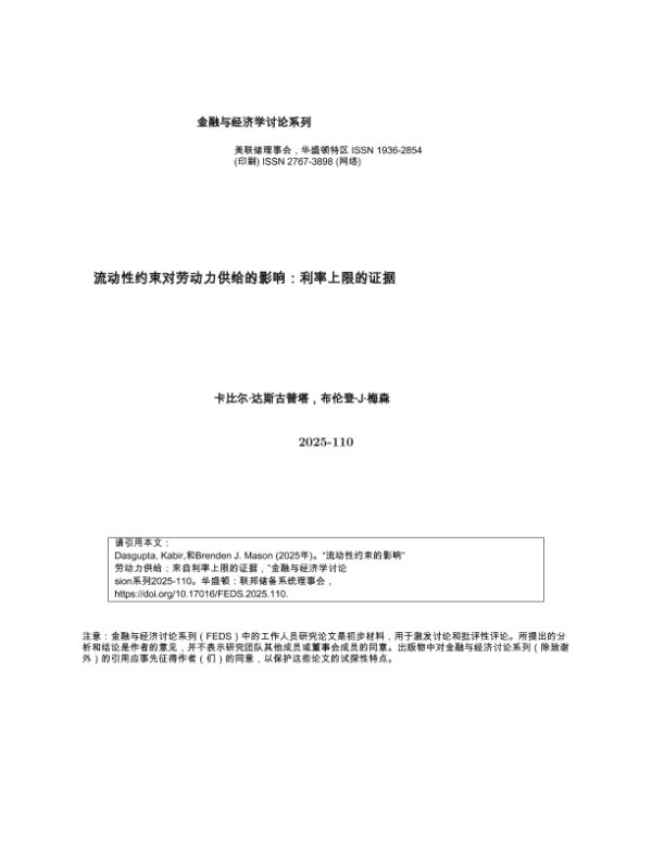 【美联储理事会】【2025】流动性约束对劳动力供给的影响 利率上限的证据-50页 学术论文