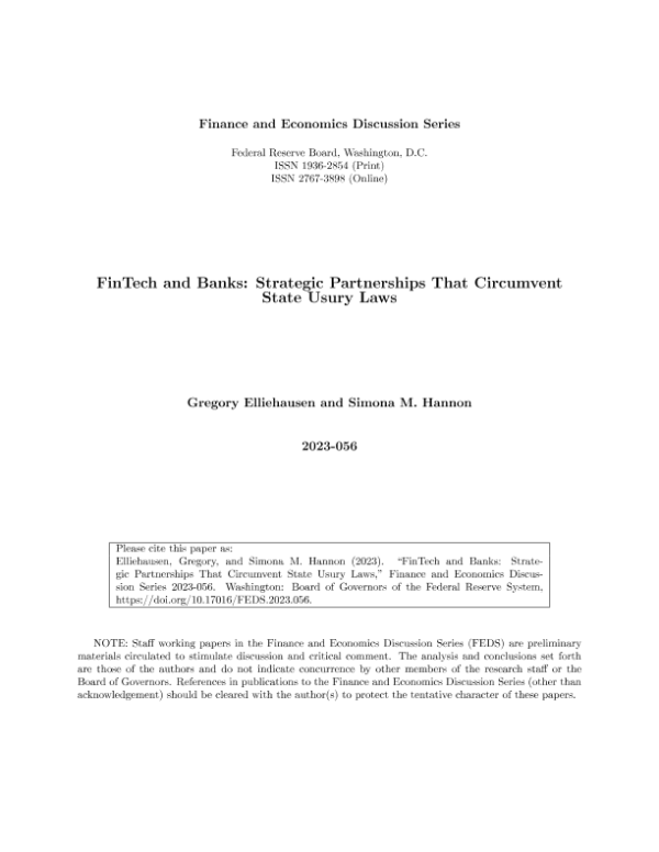 【Board of Governors of the Federal Reserve System】【20230829】FinTech and Banks Strategic Partnerships That Circumvent State Usury Laws-45页 行业研究