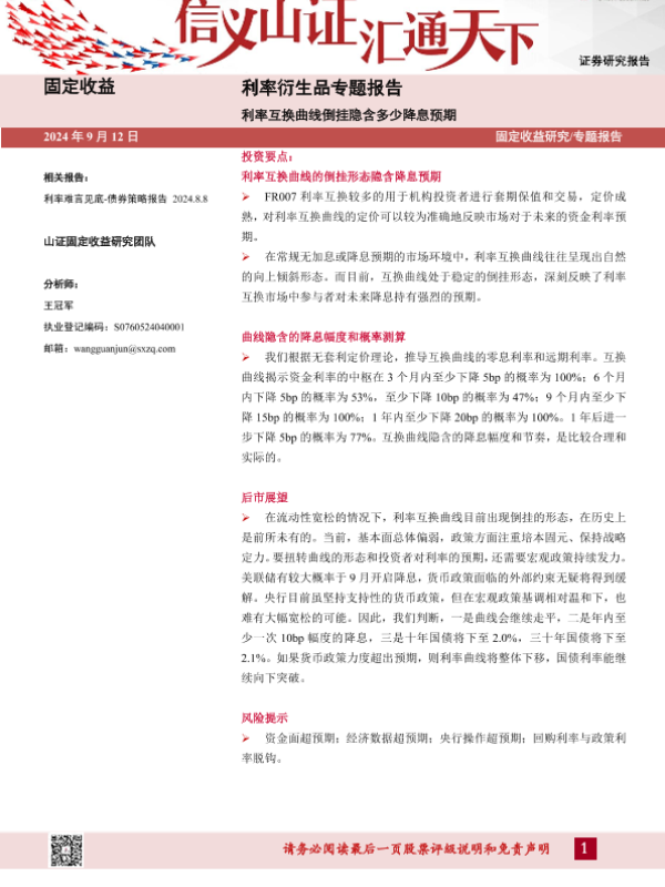 【山西证券】【20240912】利率衍生品专题报告:利率互换曲线倒挂隐含多少降息预期-20页 行业研究